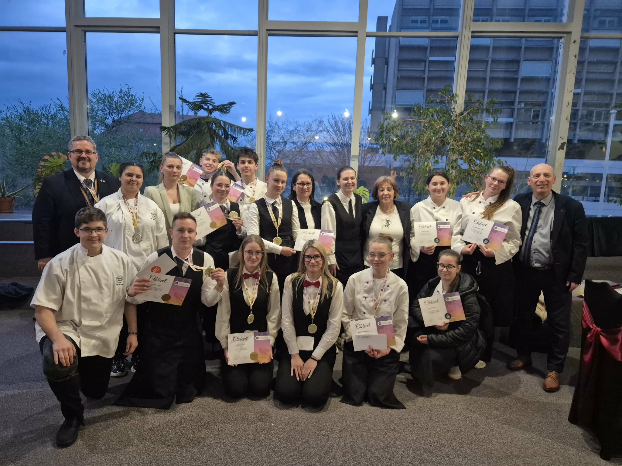 A szakács tanulók szintén szép eredményekkel tértek haza. Illés Dominik és Takács Krisztián technikus tanulók arany minősítést értek el, míg Horváth Virág és Papp László párosa ezüst minősítésben részesültek. Munkájuk során kreativitásukról, szakmai igényességükről és kitartásukról tettek tanúbizonyságot.