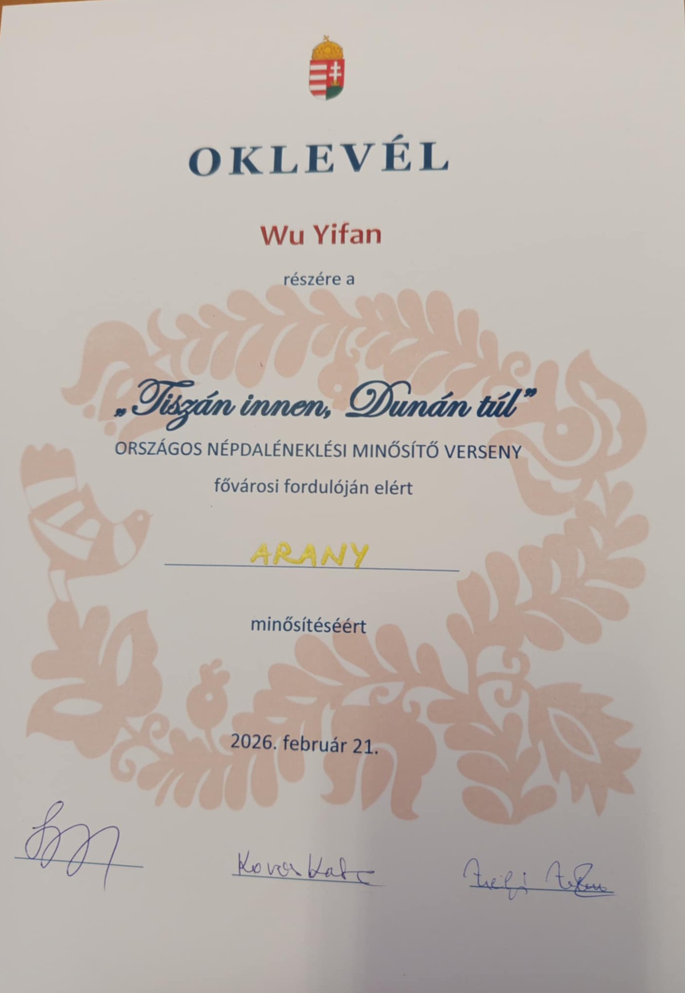 A Lajtha László Baptista Általános Iskola 8.a osztályos tanulója, Wu Yifan a Kerületi Népdalénkelő Versenyen kiemelt arany fokozatot ért el. Ő képviselte a XXI. kerületet a Fővárosi Népdaléneklő versenyen, ahol arany minősítést szerzett. Gratulálunk növendékünknek és felkészítő tanárának, Hollós Ágnesnek.